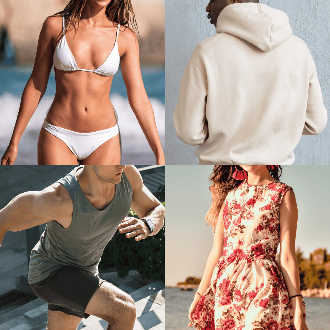 • Swimwear (bikinis, one-pieces)